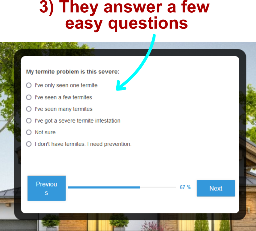 In exchange for an instant quote of how much their pest problem is going to cost them, the prospect will be required to give you their personal contact info (name, email, and phone number).